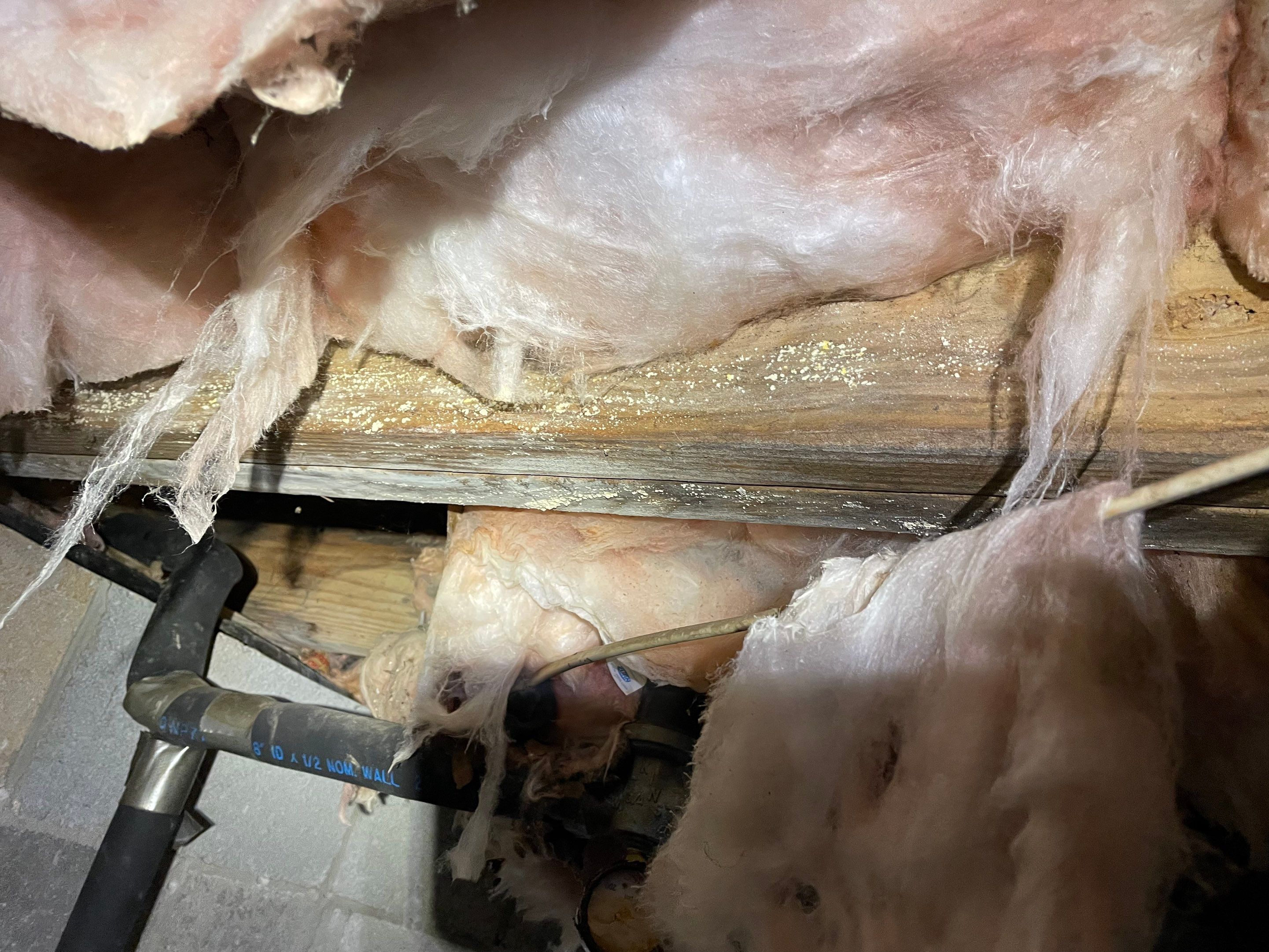 A homeowner contacted Crawlspace Titans with concerns about uneven floors in the kitchen and main living area, as well as moisture issues in the crawlspace. During our inspection, we observed pooling water at the lowest point of the crawlspace, poor interior grading contributing to water accumulation, and visible fungal growth on wooden surfaces. Support beams were still in place, but sections of the subfloor and joists had softened due to prolonged exposure to moisture. Although the homeowner already had a dehumidifier in place, these conditions were causing structural issues and continued fungal growth.