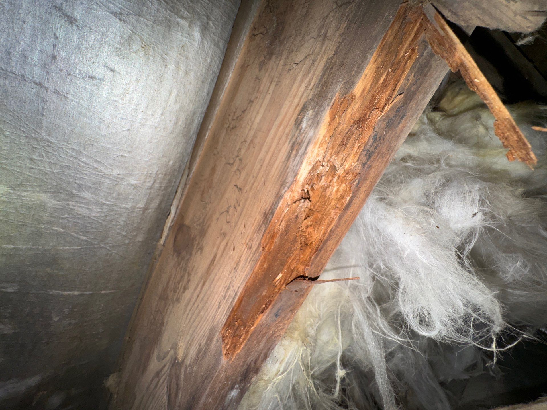 A property owner was seeking an affordable solution for a rental home that was experiencing uneven floors and deteriorating vertical supports. During our inspection, we identified several areas that required additional structural reinforcement. Multiple joists and the main girder were damaged and in need of replacement due to brown rot. The crawlspace exhibited heavy fungal growth and elevated moisture levels.
