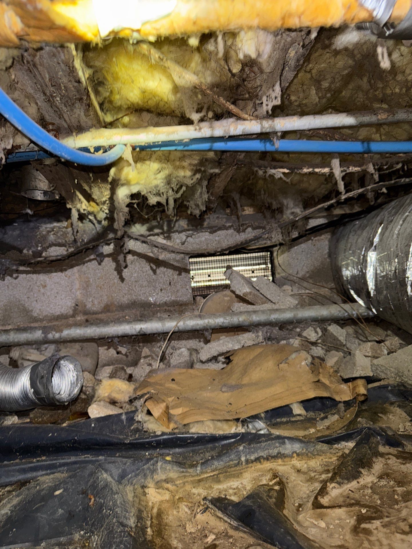 This cost-conscious solution addressed both structural and environmental concerns, stabilizing the floors, mitigating fungal and insect risks, and providing a safer, healthier crawlspace for the rental property.