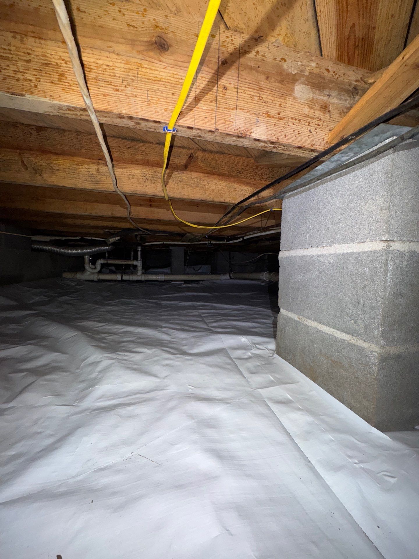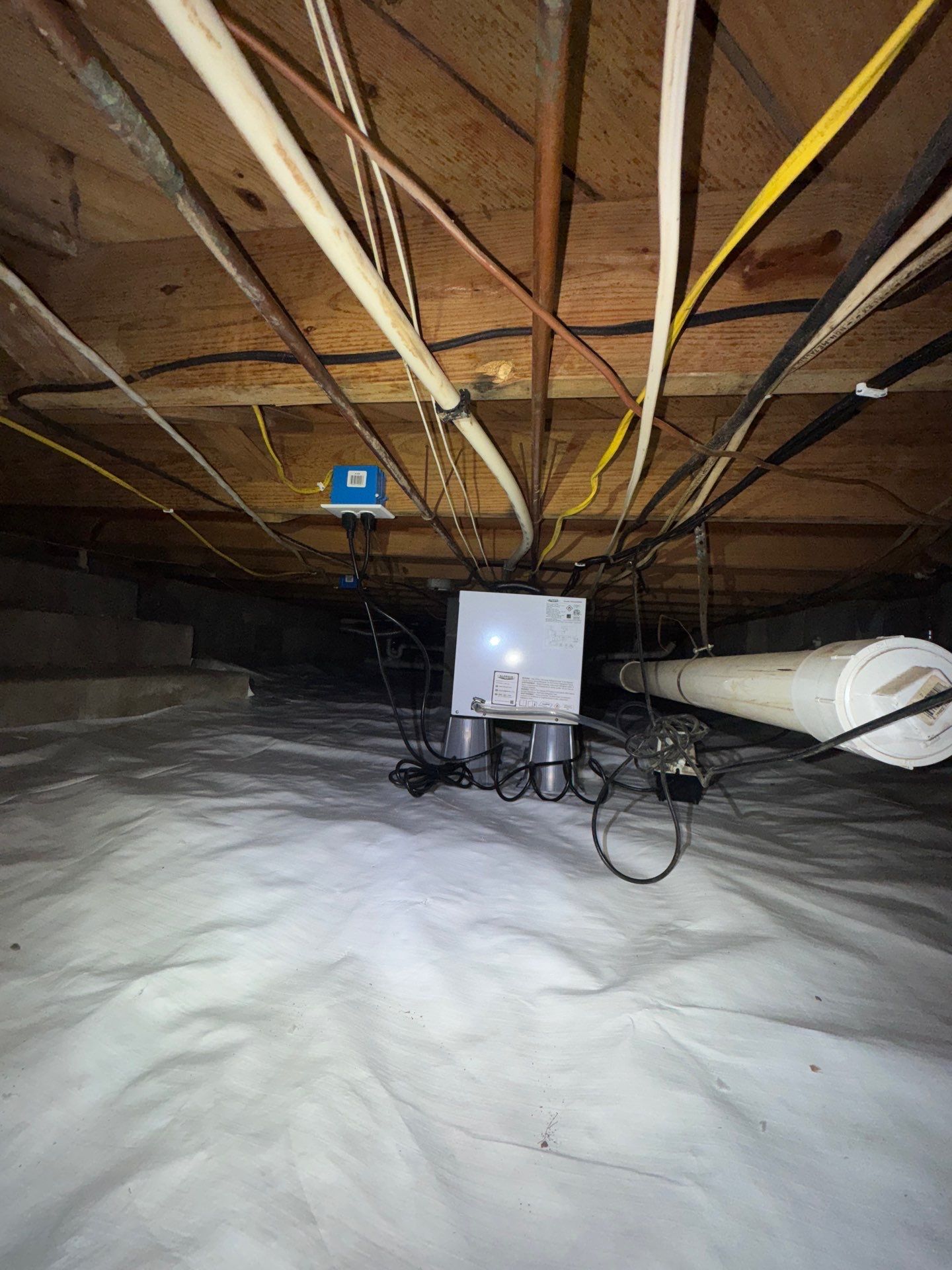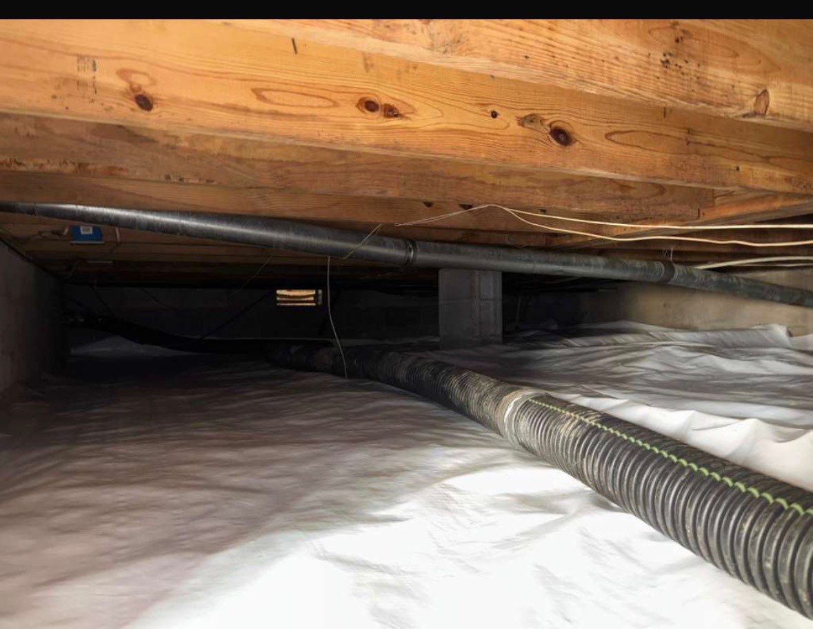 We then installed new vapor barriers in all crawlspace areas and added two dehumidifiers to effectively control moisture levels in both the basement living space and crawlspaces.