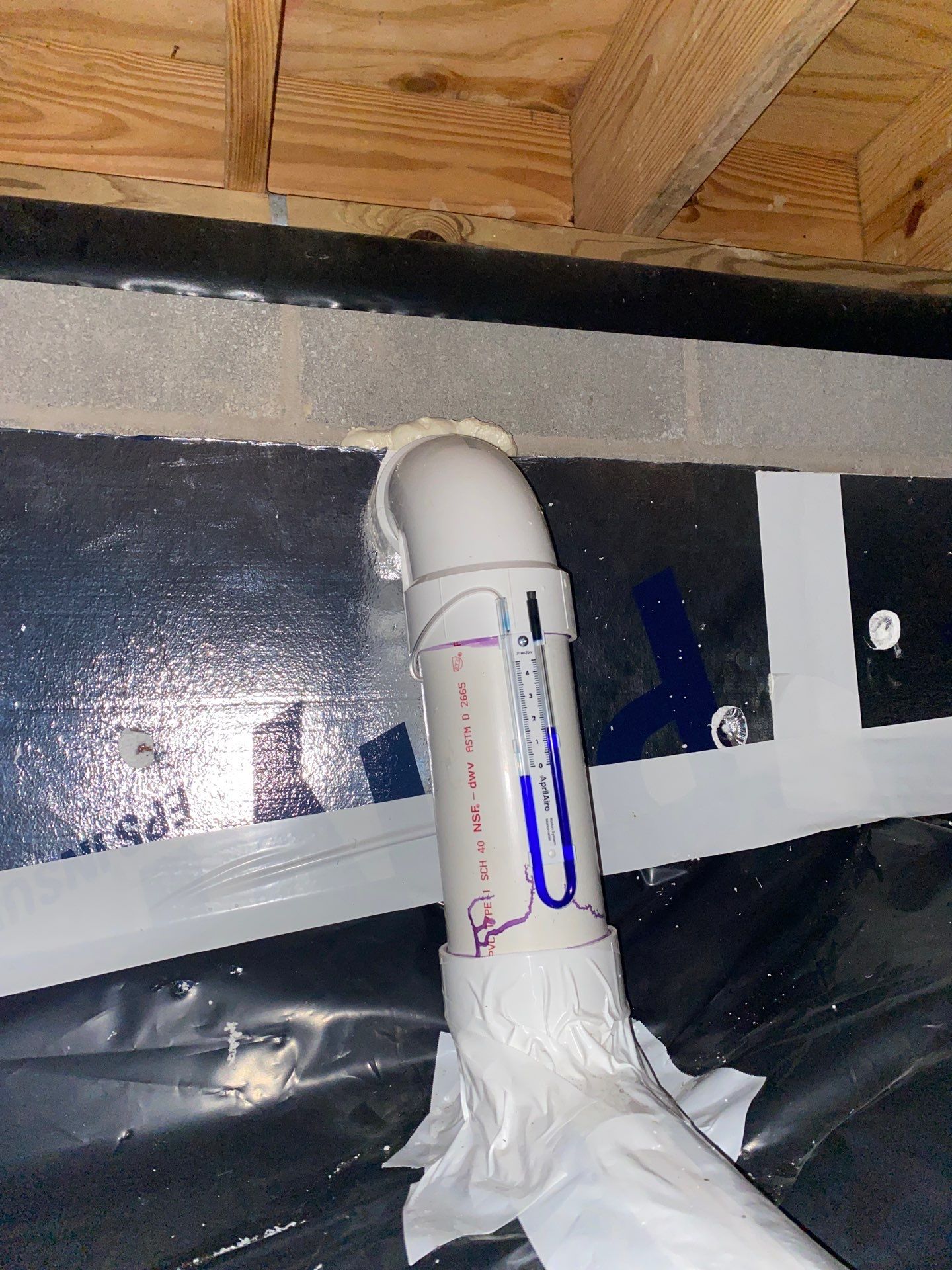To ensure the radon mitigation system would function optimally, the existing vapor barrier was professionally sealed along the foundation walls and piers. Once the crawl space was fully sealed, we installed the new radon system to effectively exhaust hazardous gases from the crawl space and essentially the living areas.