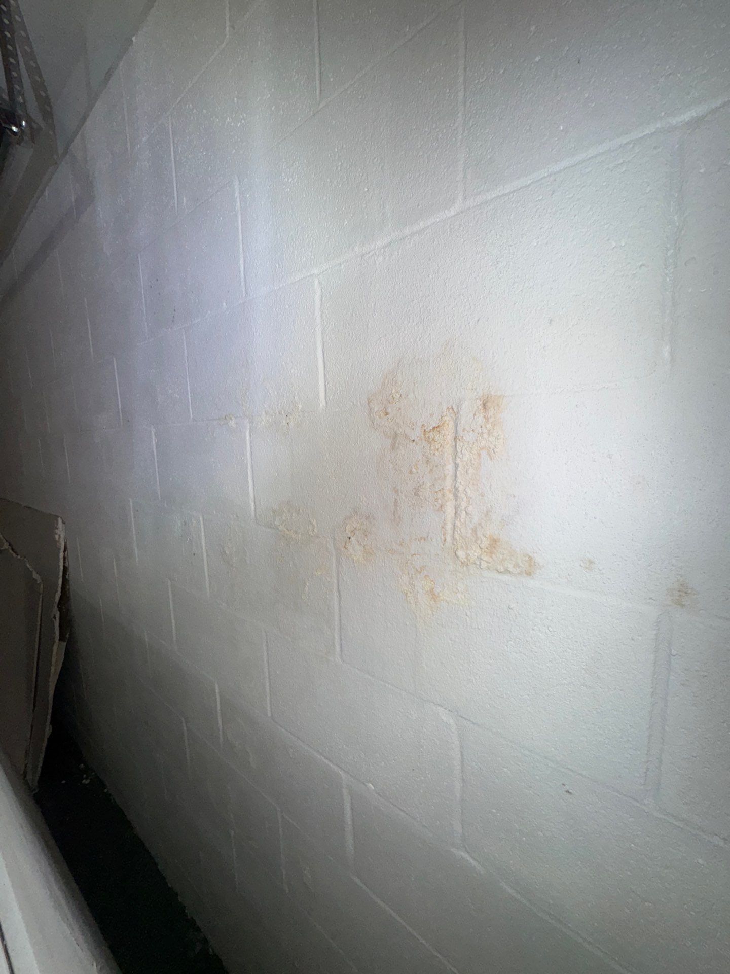 During our inspection, we identified active water intrusion along the basement floor at multiple locations, with visible water staining and signs of moisture penetration through the CMU block foundation walls. These conditions were contributing to elevated moisture levels that can lead to fungal growth and mold, as well as increased hydrostatic pressure against the foundation walls, an issue that can weaken the foundation over time if left unaddressed. Testing also confirmed elevated radon levels within the home.