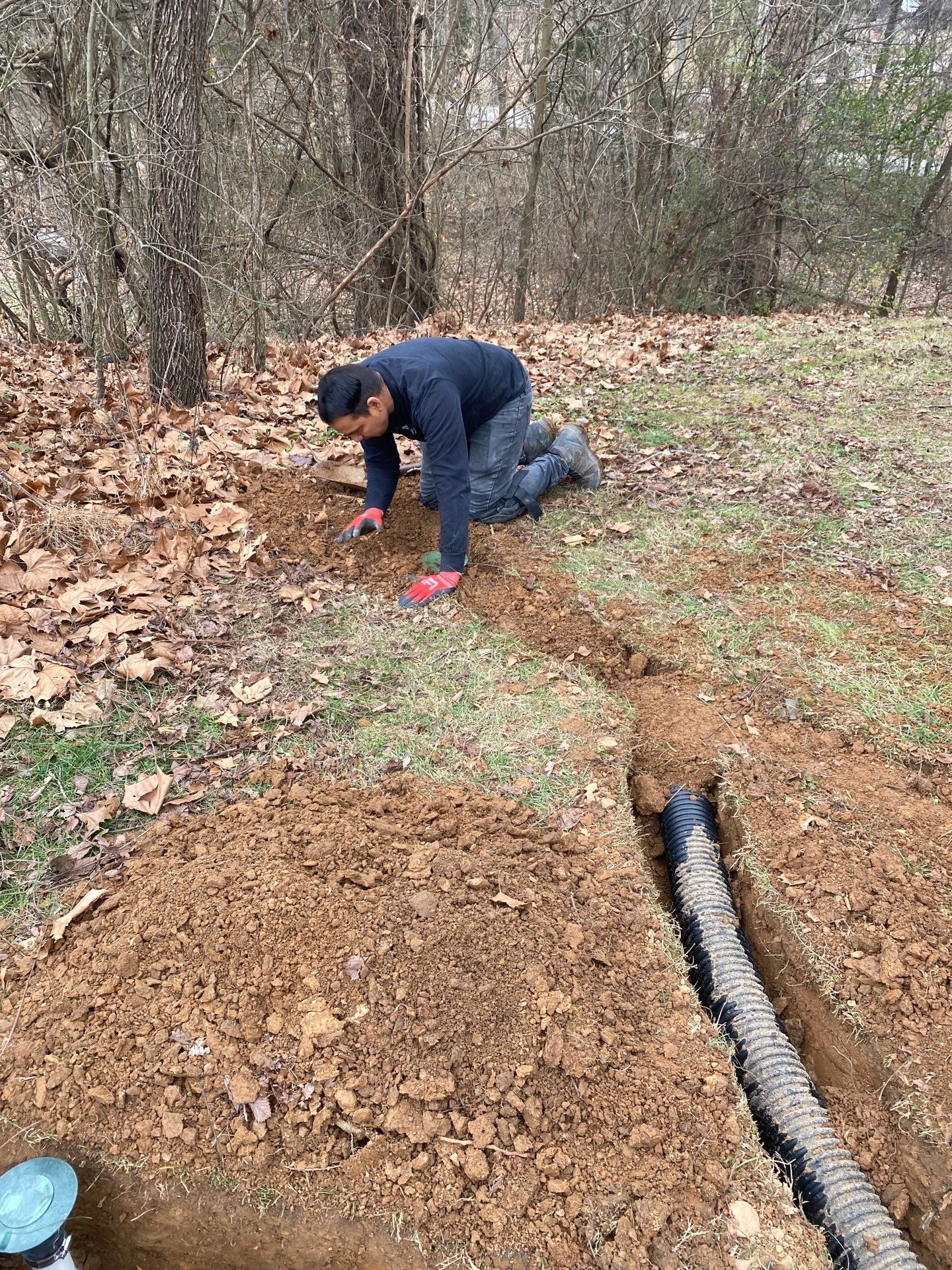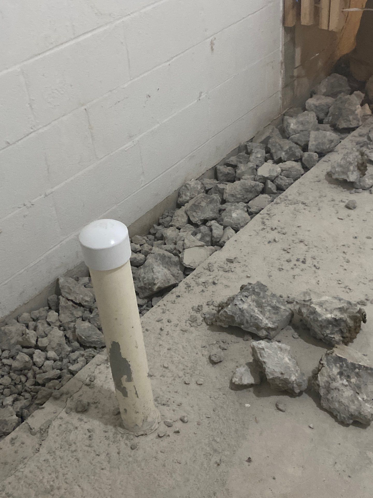 To resolve these concerns, we recommended and installed a comprehensive interior basement drainage system designed to relieve hydrostatic pressure and control moisture. The system includes a wall vapor barrier and a complete sump pump system that safely discharges collected water to the exterior of the home. We also recommended extending the downspouts away from the foundation using pop-up drains to prevent water from discharging next to the home and infiltrating the CMU walls. In addition, a radon mitigation system was installed to effectively capture and vent radon gas from beneath the basement floor.