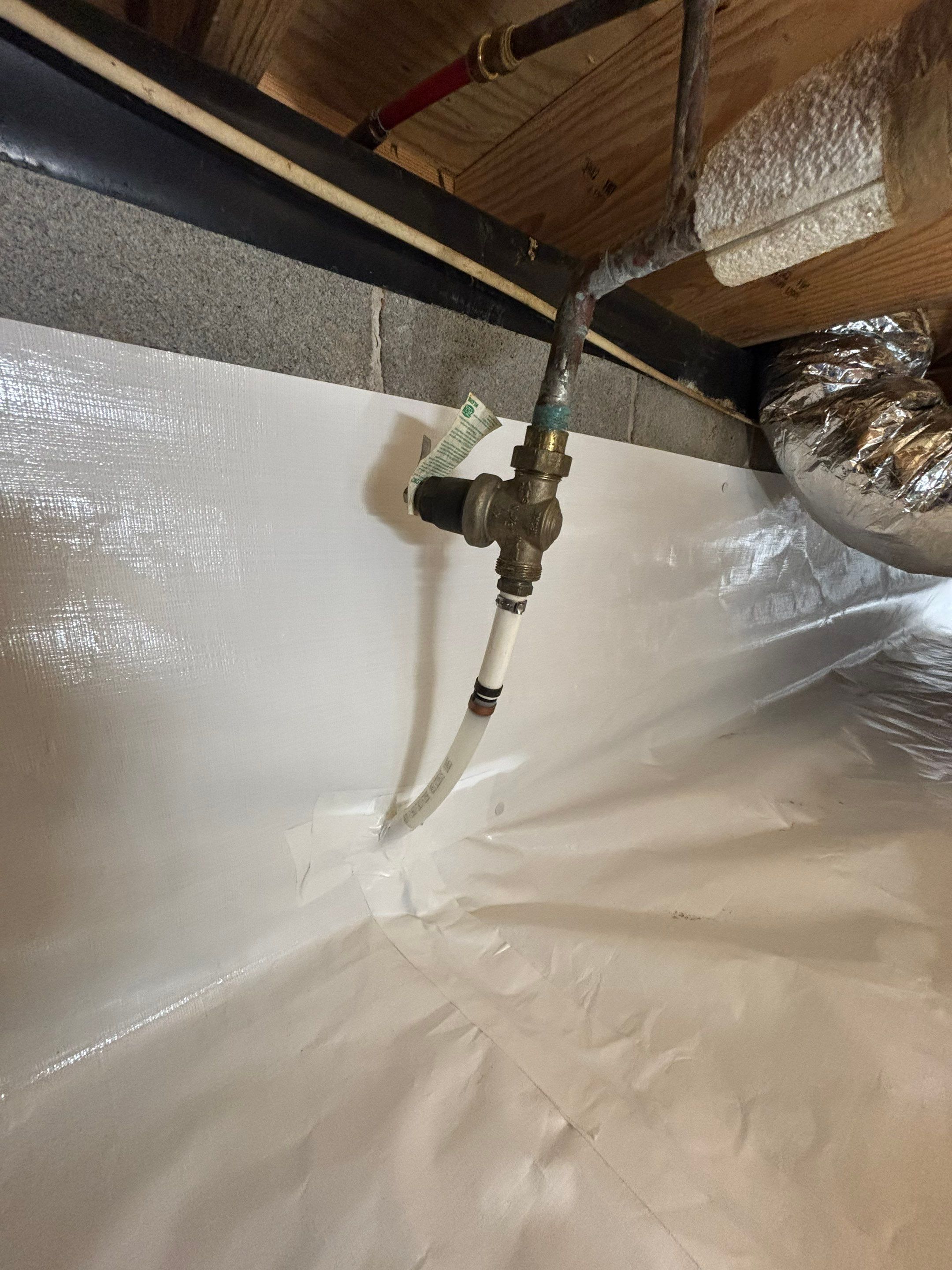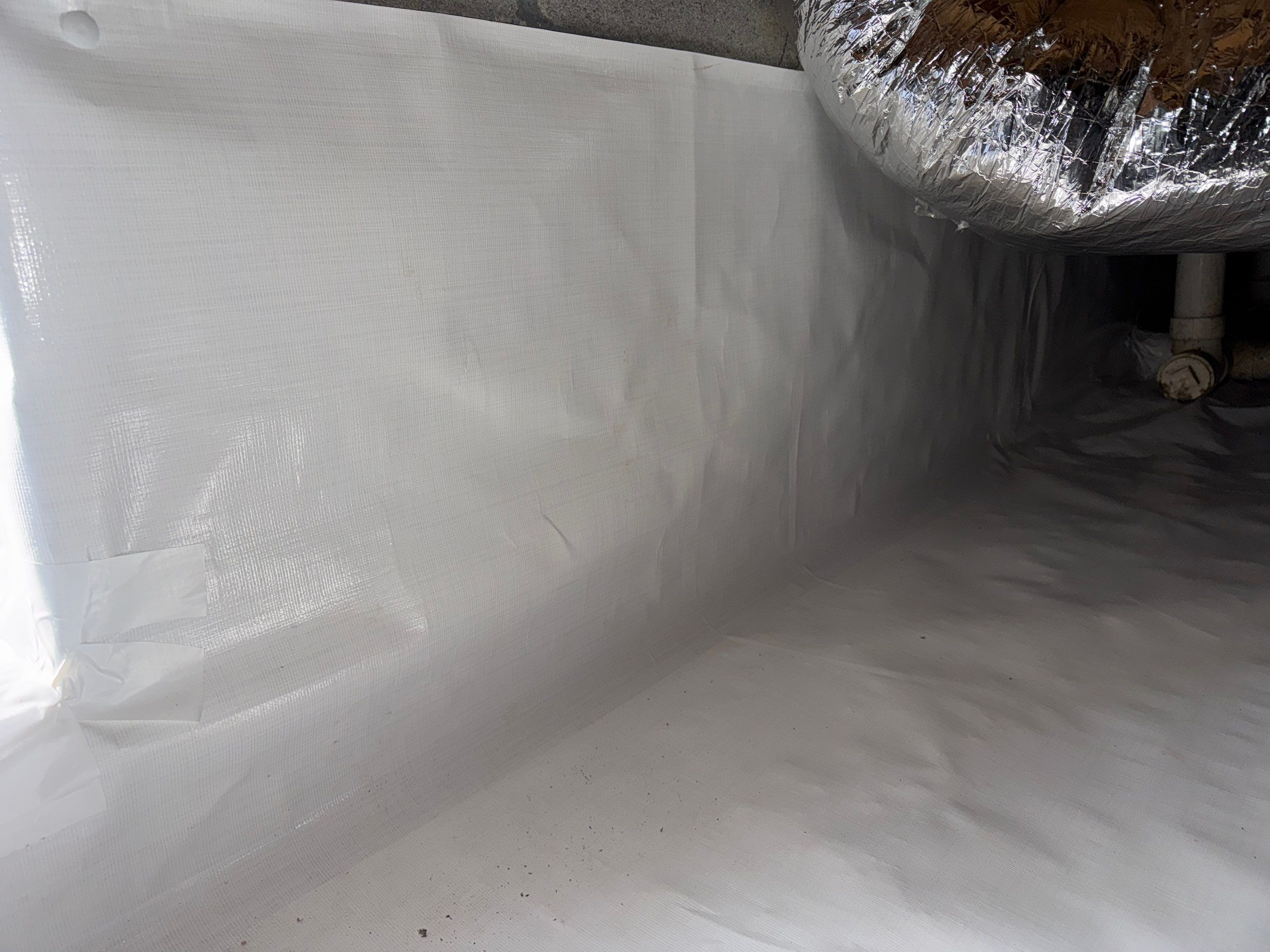After inspecting the home, it was clear that controlling moisture intrusion in the crawlspace was critical. Elevated moisture levels were impacting the existing insulation and creating conditions that could lead to long term structural and air quality concerns. We recommended a full crawlspace encapsulation to properly control moisture and humidity, along with exterior drainage improvements to redirect water away from the home’s perimeter.