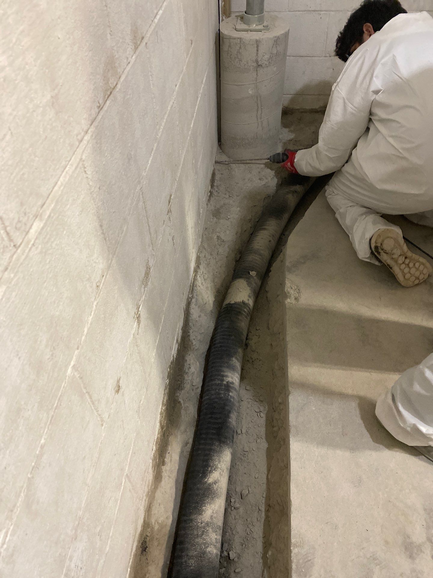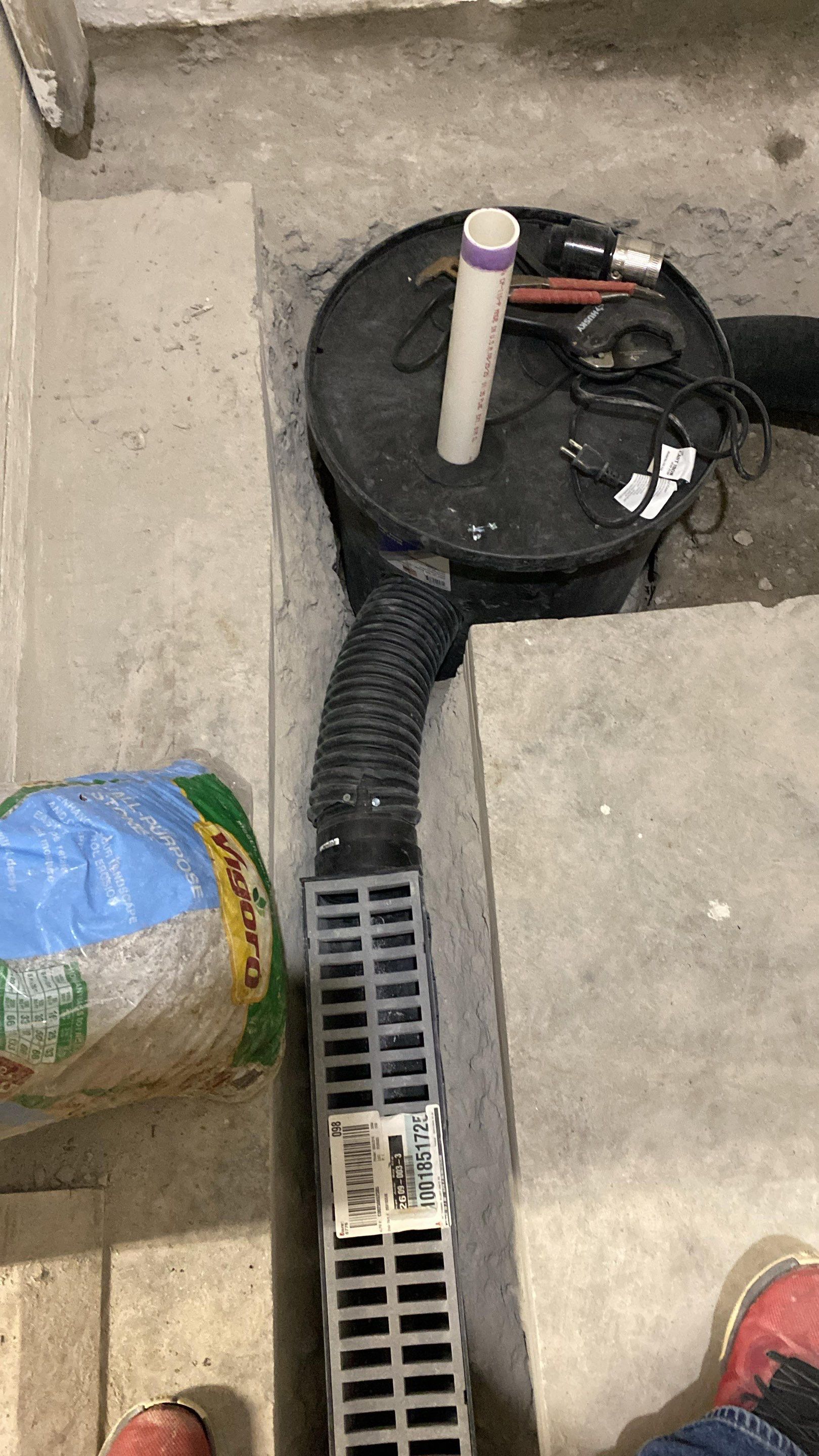 Finally, a sump pump system was installed to remove collected water and discharge it safely away from the home.
