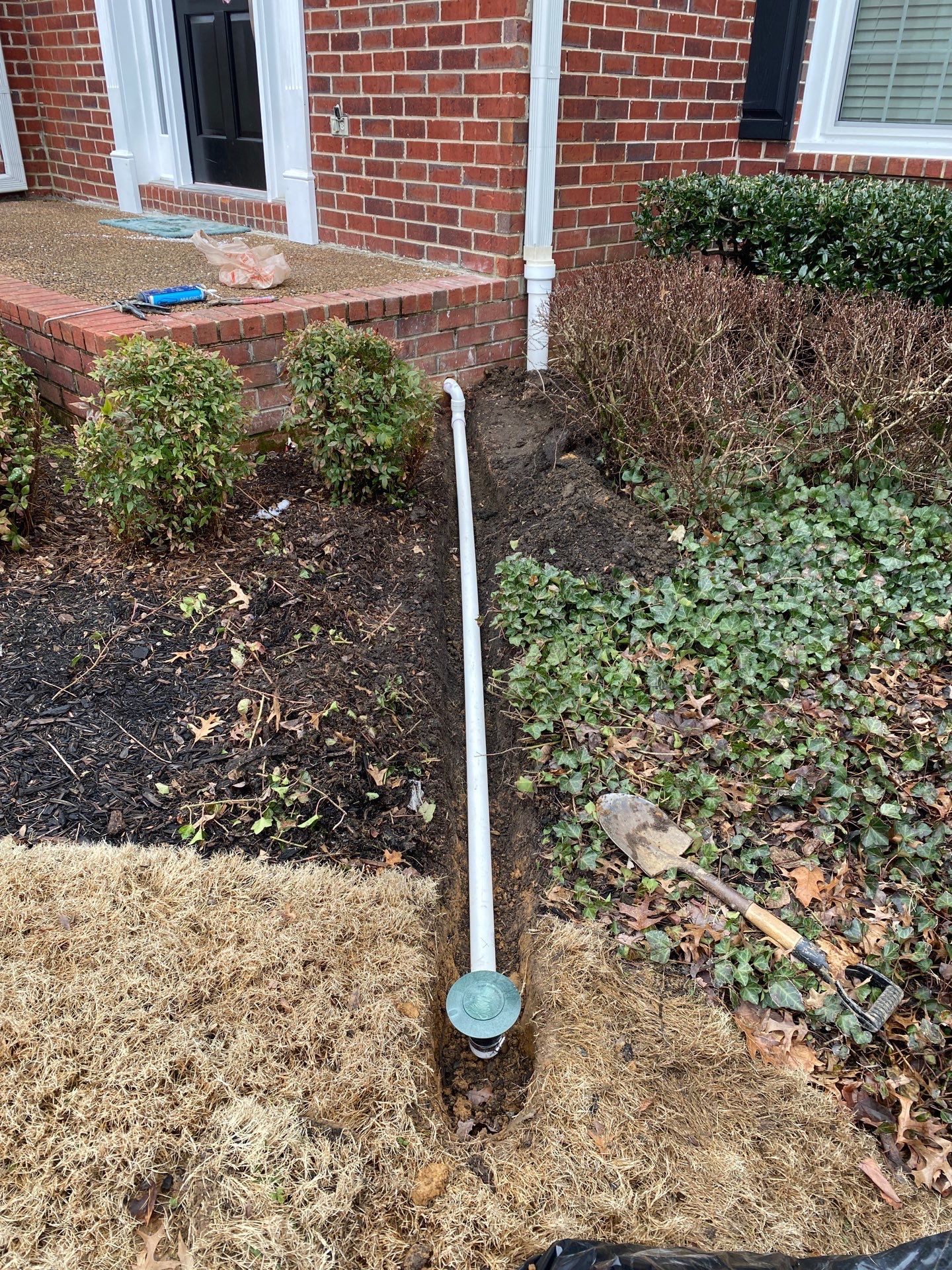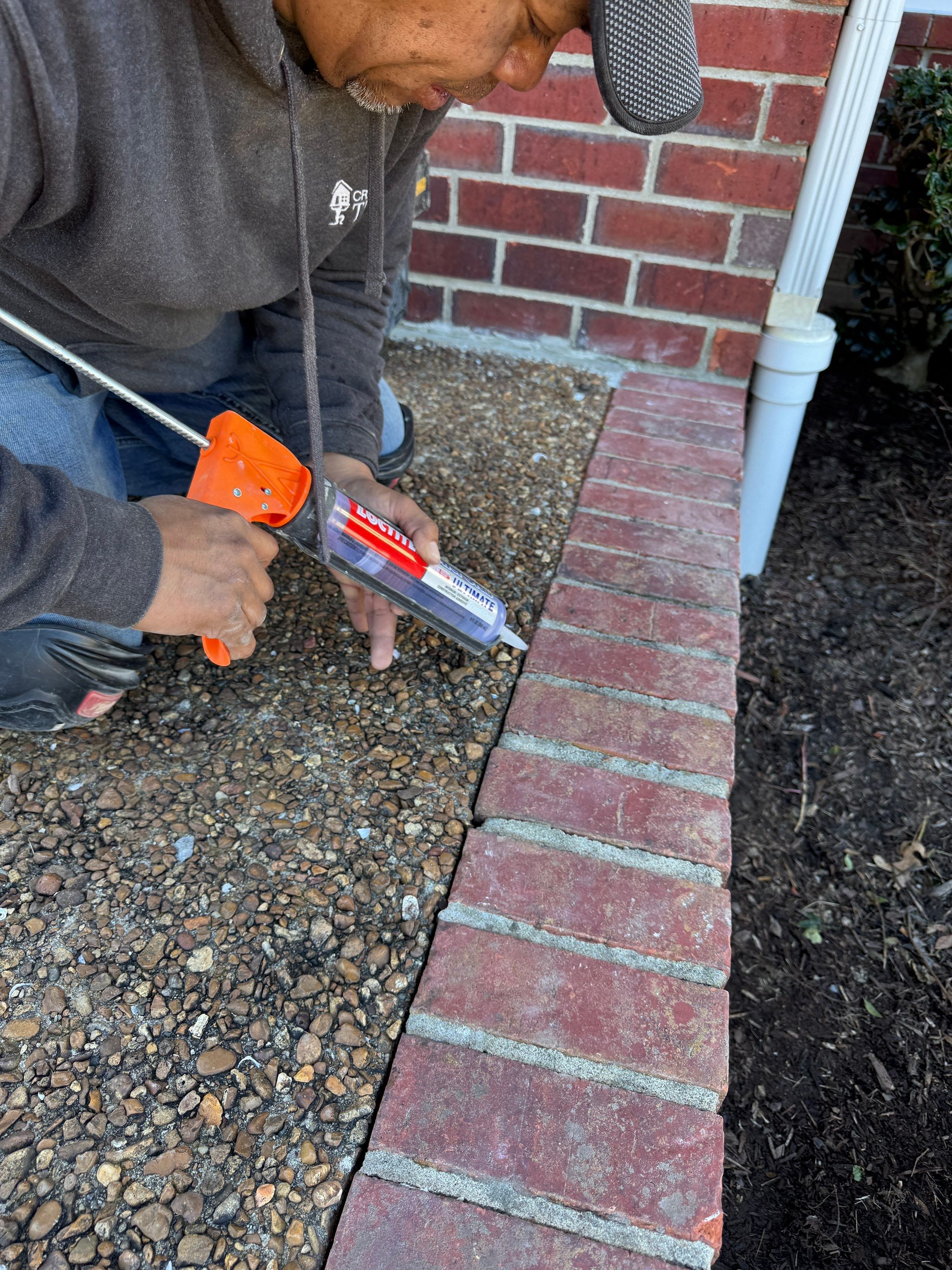 First, we sealed the front porch area to prevent surface water from penetrating above the foundation wall. We also repaired a failing downspout that had been leaking and contributing to water buildup near the foundation.