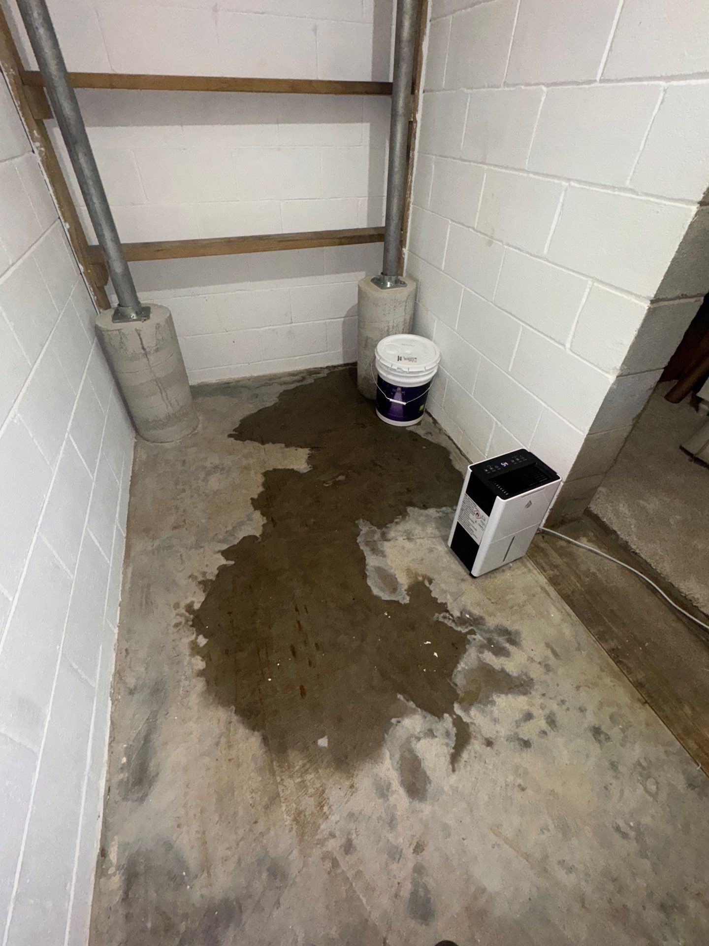 A homeowner contacted us after discovering water leaking through her foundation wall and pooling in the basement. At the time of our inspection, water had accumulated to approximately one inch deep in parts of the space. Because the basement included finished, livable areas, the flooding needed to be addressed immediately to prevent further damage.