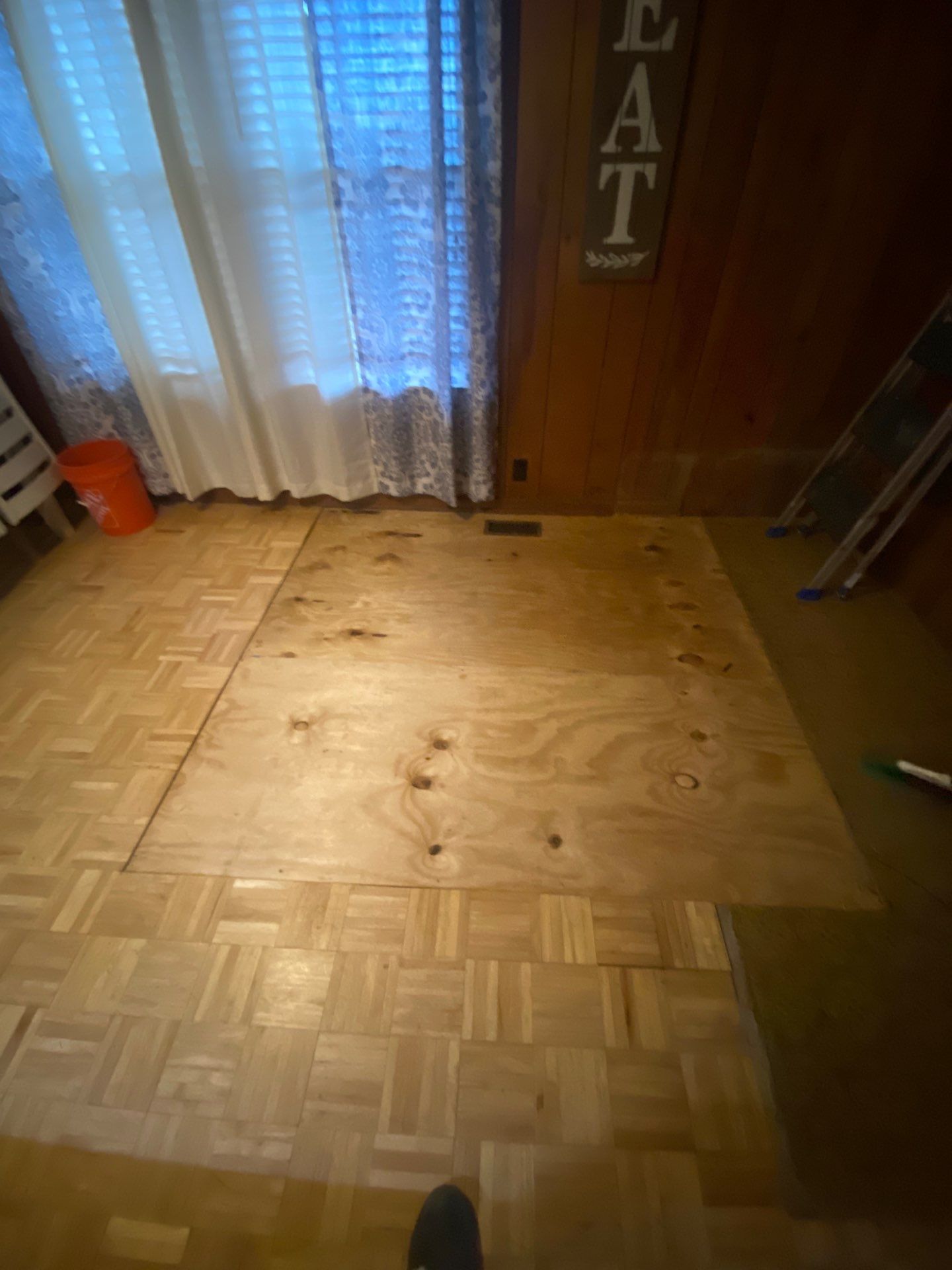 To ensure long-term stability, we removed the damaged subfloor and installed new, structurally sound subflooring along with new floor joists. The improperly installed fireplace system was also safely removed.
