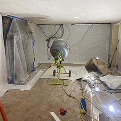 In addition, we relieved hydrostatic pressure against the foundation walls and installed a durable vapor barrier system. This barrier helps prevent visible moisture intrusion while allowing any water that may seep behind it to be directed into the drainage system for controlled removal.