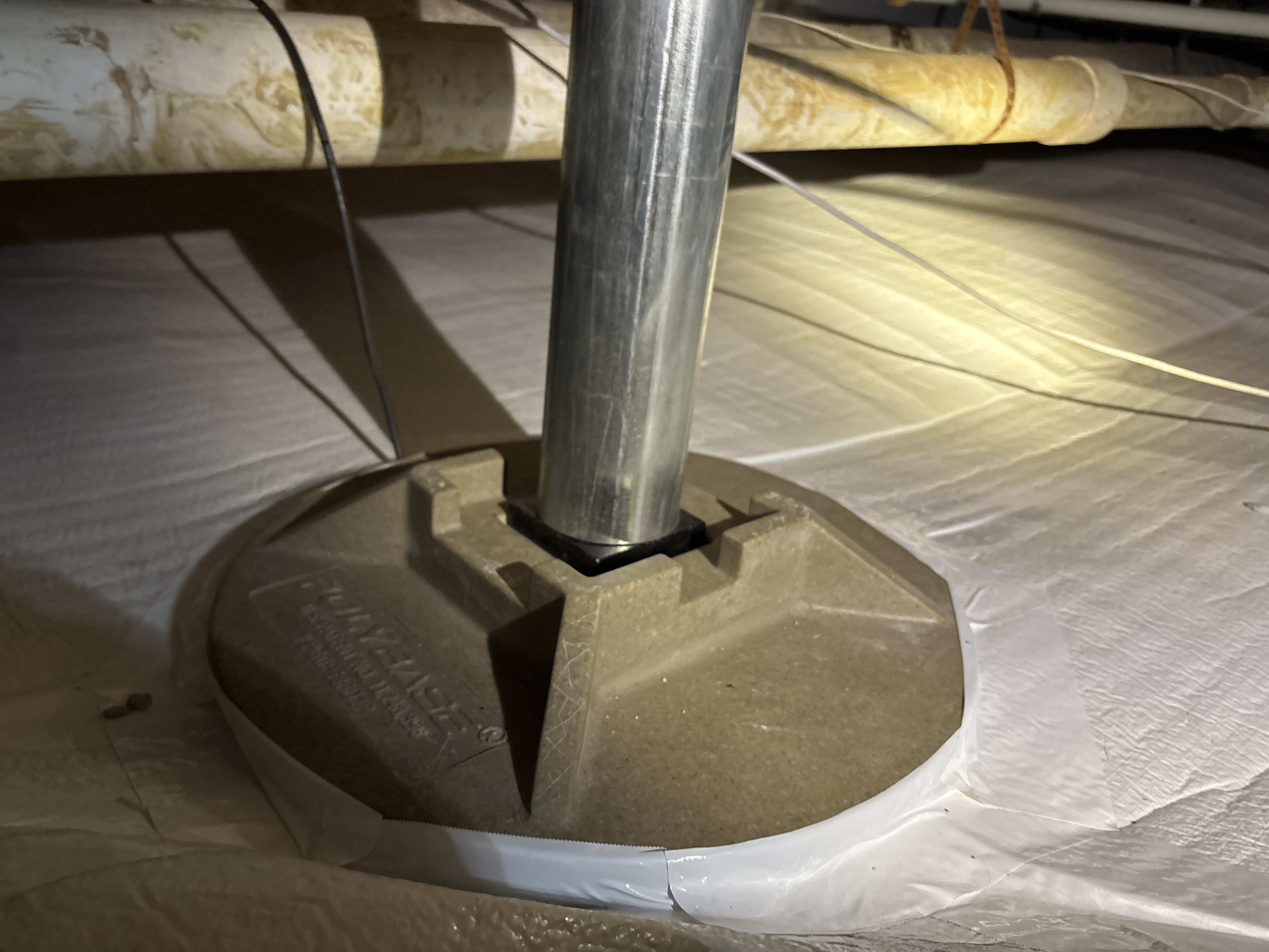 In addition to the structural improvements, we addressed moisture control concerns within the crawlspace. Our team repaired sections of vapor barrier tape that had come loose, relocated the dehumidifier from a suspended position to a stable ground placement, and installed a condensation pump to ensure efficient removal of collected water.