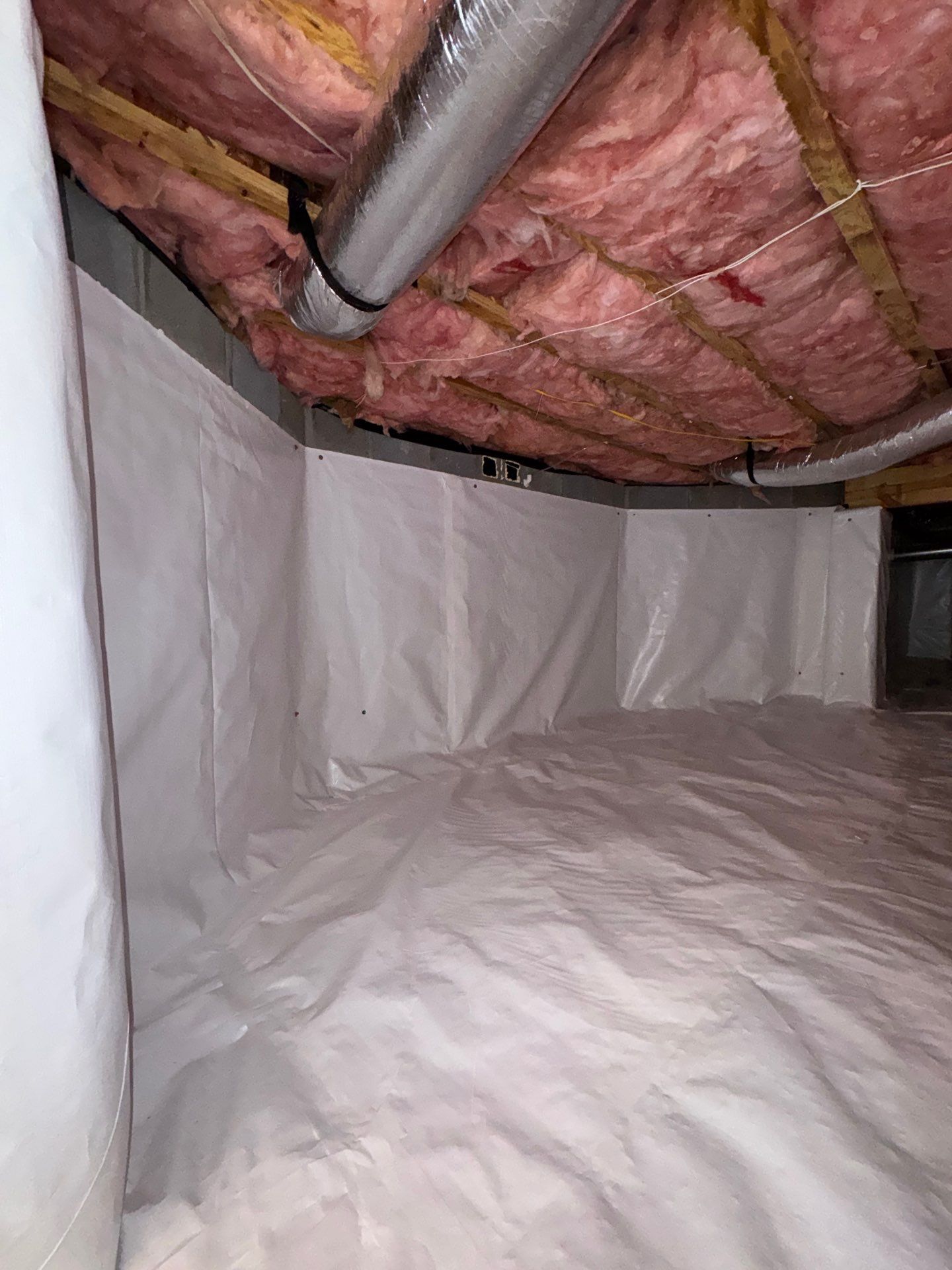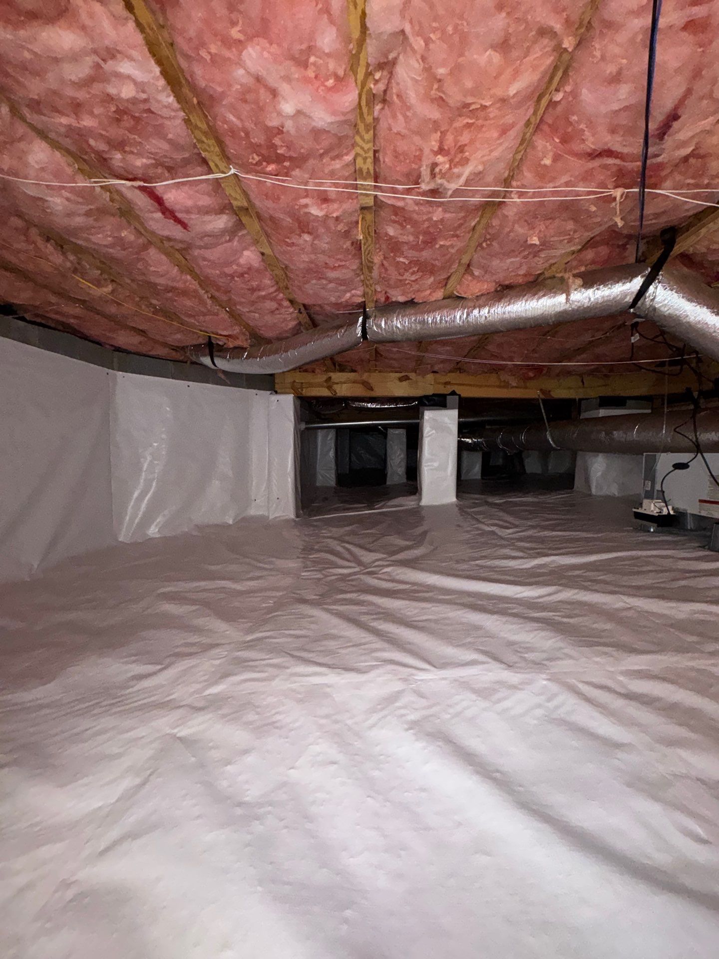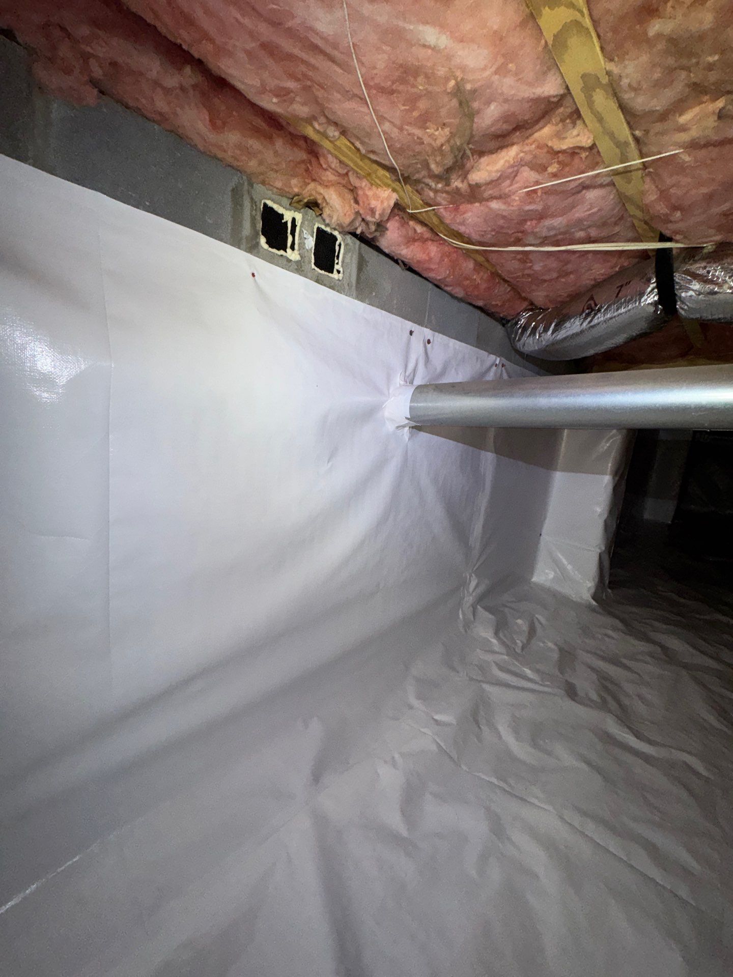 Once the treatment was completed, we sealed the crawlspace vents and installed a full crawlspace encapsulation system. This system creates a protective barrier along the walls and ground, preventing moisture and water vapor from entering the crawlspace environment.