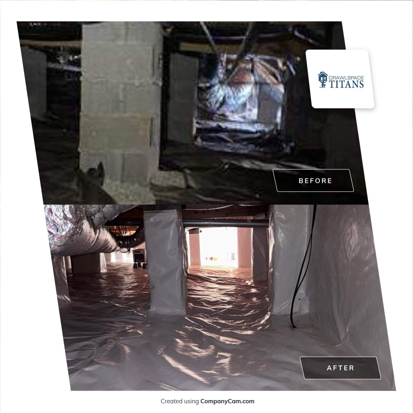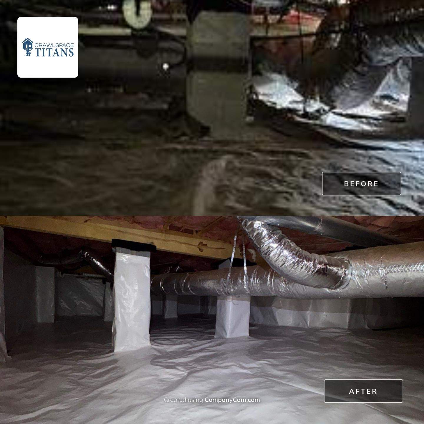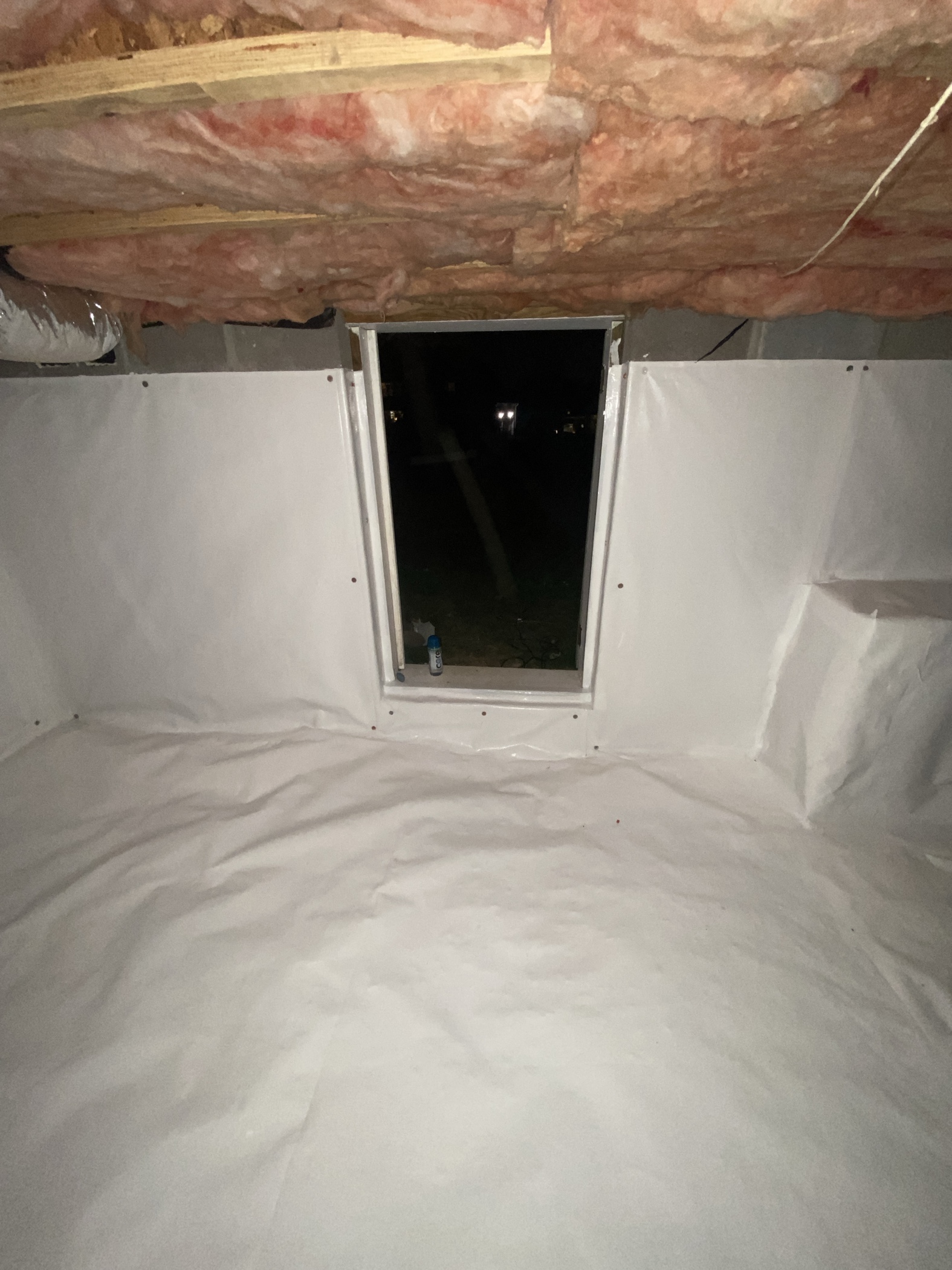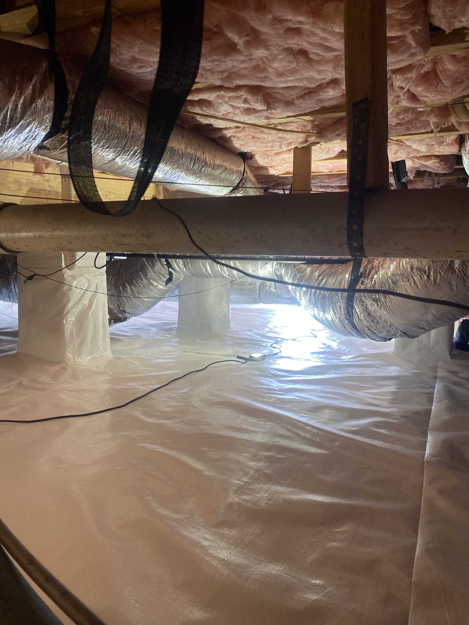 Once the treatment was completed, we sealed the crawlspace vents and installed a full crawlspace encapsulation system. This system creates a protective barrier along the walls and ground, preventing moisture and water vapor from entering the crawlspace environment.