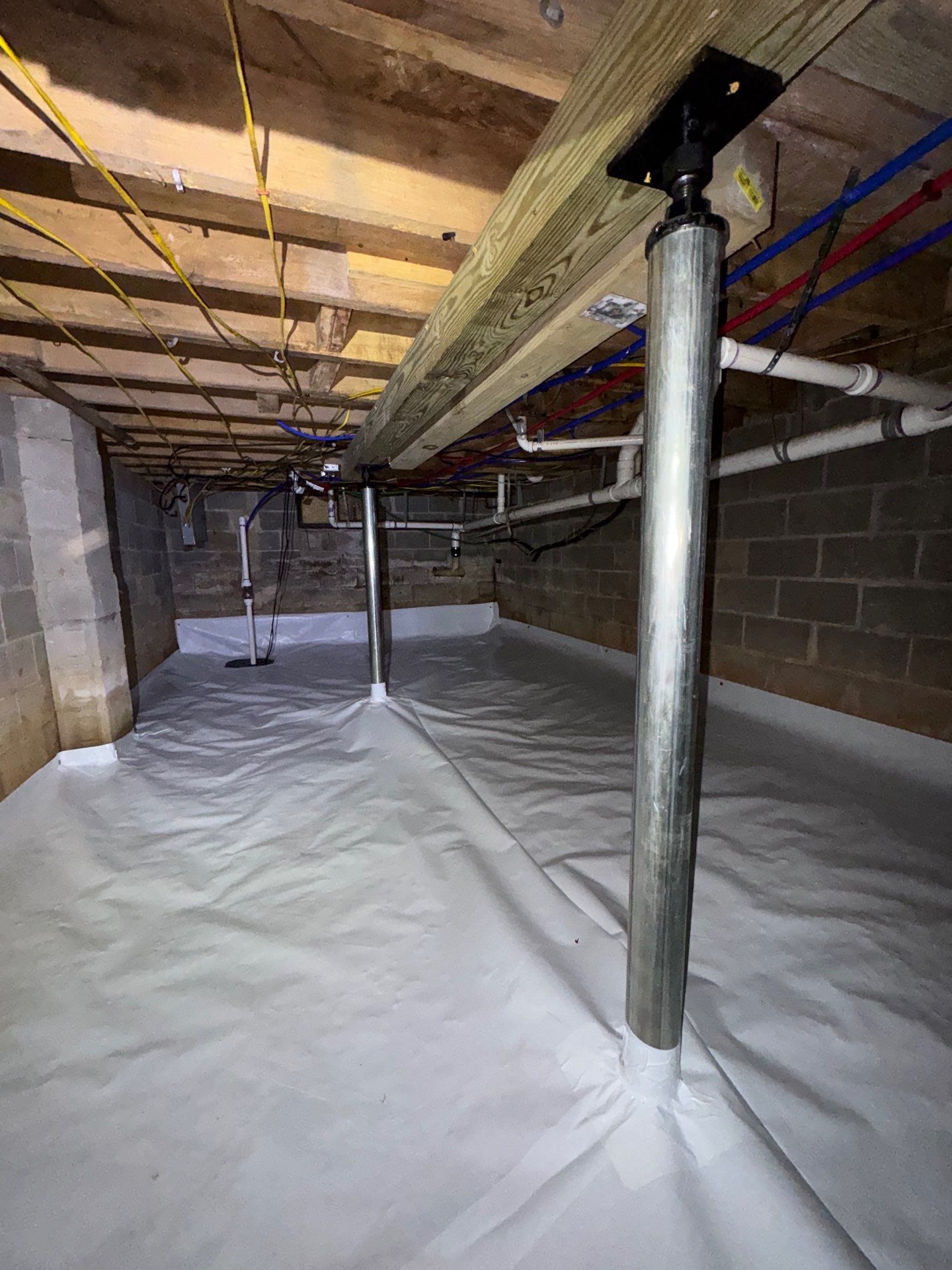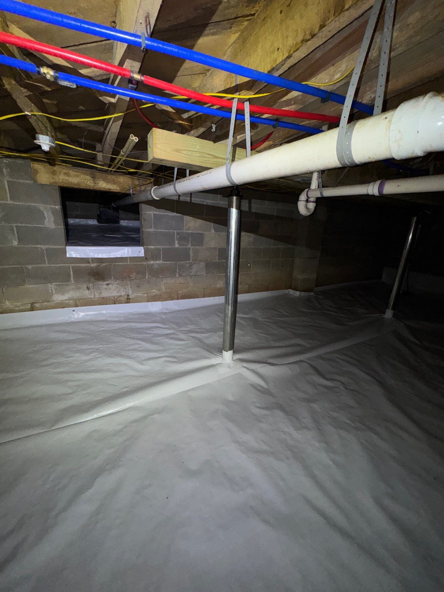 Because there was evidence of previous standing water in the crawlspace, we also recommended installing a sump pump system. This system helps remove any water that may enter the crawlspace in the future and protects the area from ongoing moisture problems.
