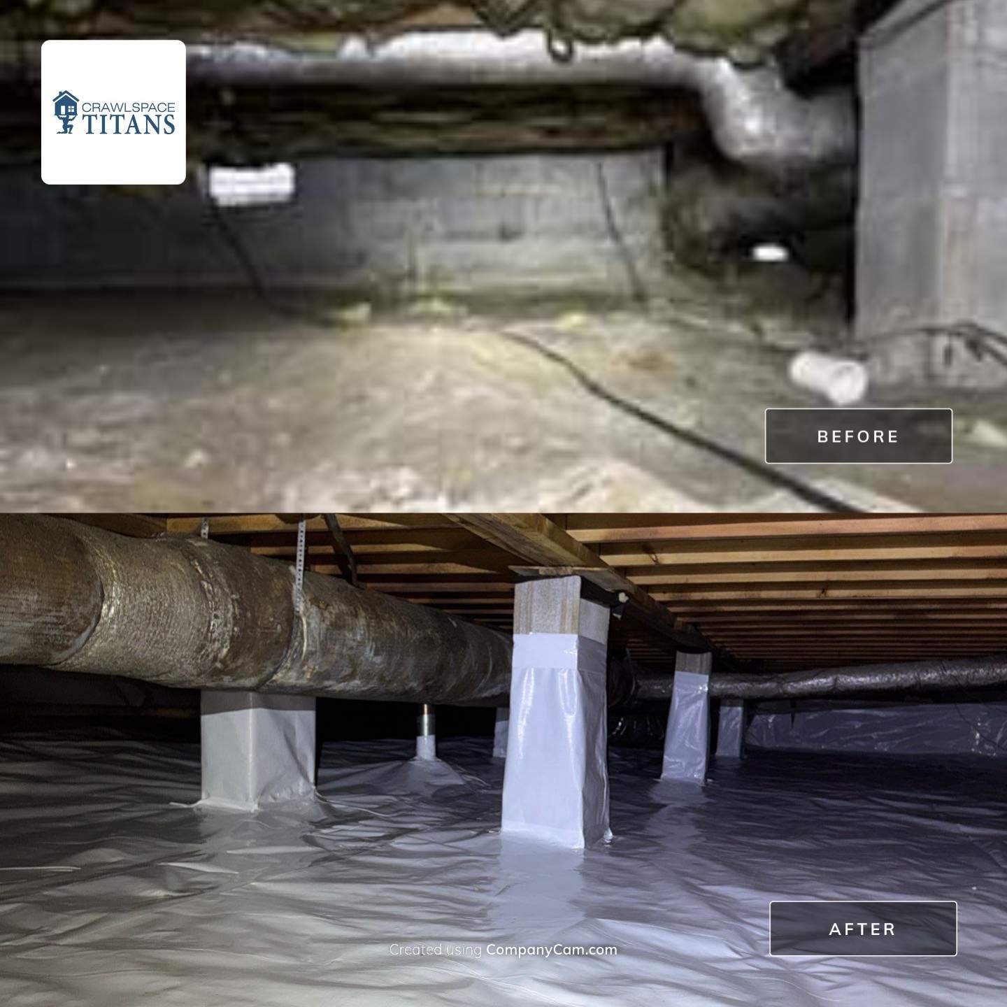 After resolving the moisture and structural issues, we completed a full crawl space encapsulation. This system helps prevent future moisture intrusion, reduces the risk of fungal growth, and protects the home’s structural components for years to come.