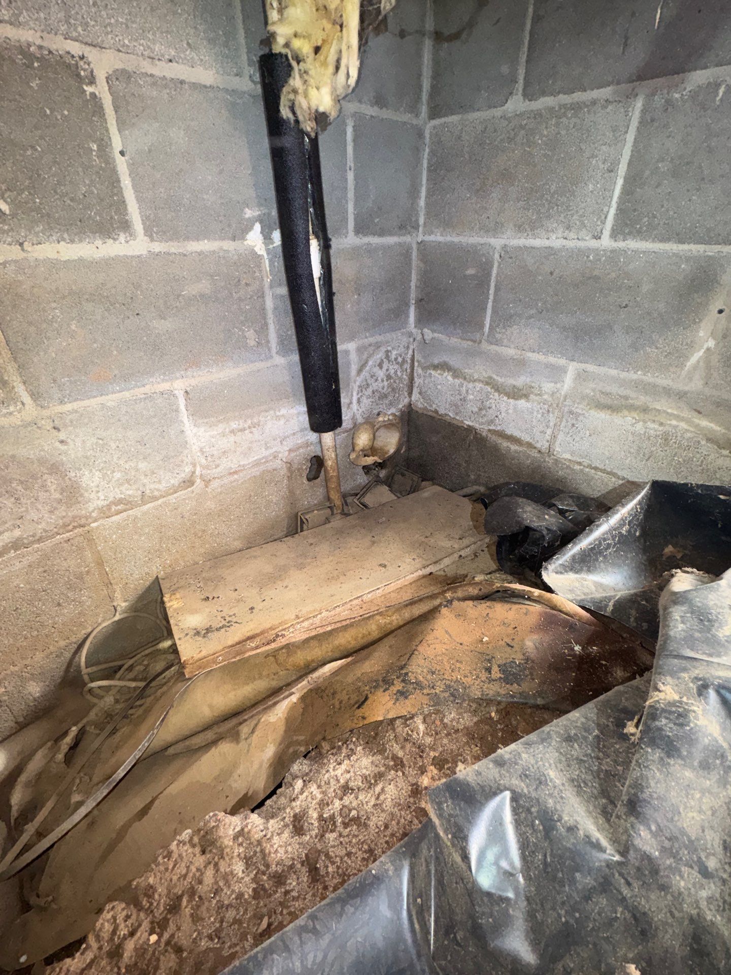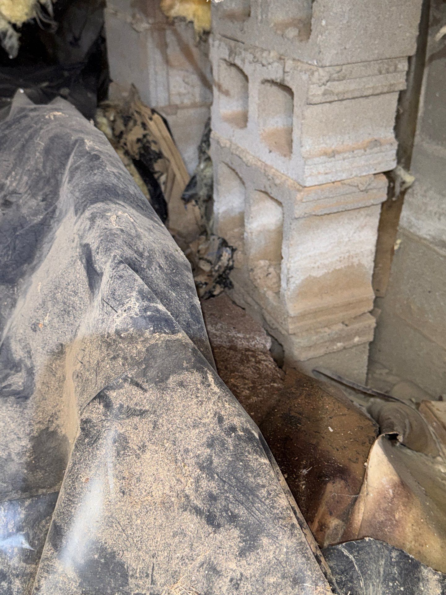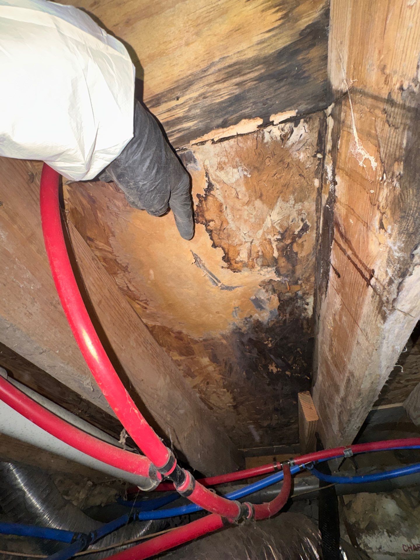Our first step was a full crawlspace cleanout and remediation. All contaminated and deteriorated materials were safely removed to eliminate sources of moisture retention and potential air quality issues. We then performed a thorough two-step fungal treatment using a professional-grade foam cleaning process designed to neutralize and remove microbial growth from wood and masonry surfaces. This step is critical for improving indoor air quality and preventing future contamination.