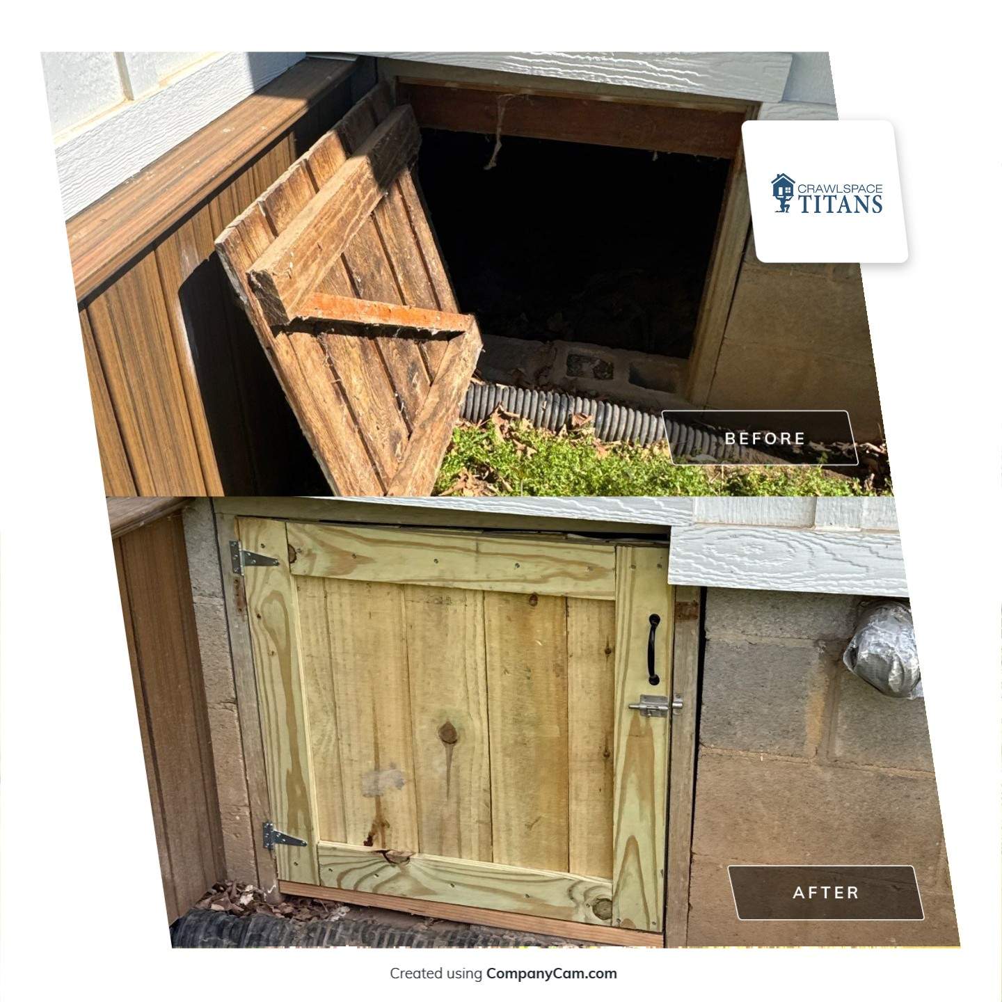 Finally, we replaced the damaged crawlspace door with a new, properly fitted access door to improve sealing, security, and overall functionality.