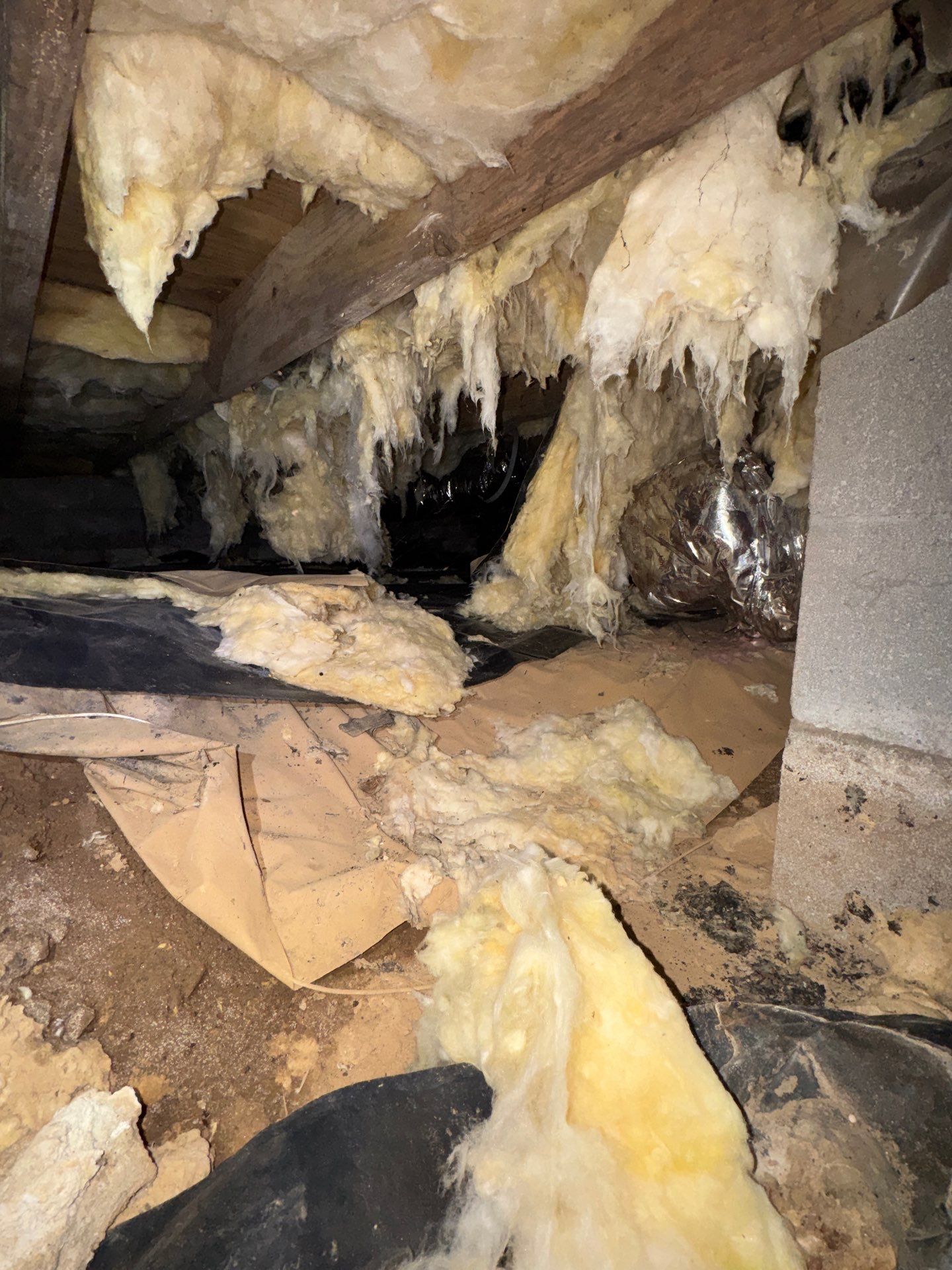 The property itself sits on a beautiful piece of land in Springfield, TN but beneath the home, the crawlspace told a very different story. During our inspection, we identified several key problems, including failing and falling insulation, active water intrusion, standing water at the lowest point of the crawlspace, and widespread fungal growth on structural surfaces. In addition, there were concerns related to inadequate structural support and a damaged crawlspace access door that compromised the overall integrity and efficiency of the space.